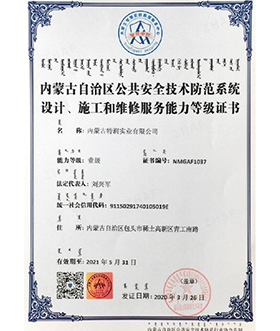 公共安全技术防范系统设计、施工和维修服务能力等级证书