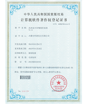 《机房动力环境管控系统V1.0》计算机软件著作权登记证书